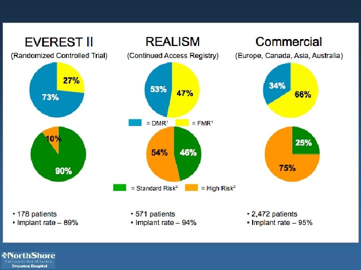 Key Inclusion Criteria • Functional MR ≥ 3+ – ischemic or non-ischemic cardiomyopathy • Symptomatic – NYHA class II, III or ambulatory IV • STS mortality risk is ≥ 8% or Local Site Heart Team concludes that co-morbidities result in a prohibitive predicted operative risk of stroke or death • ≥ 1 HF hospitalization during prior year – and/or BNP ≥ 400 pg/ml – or n. T-pro. BNP ≥ 1600 pg/ml ≤ 90 days • treated per standards for CAD, LV dysfunction, MR or HF including CRT, revascularization, OMT • primary MR jet originates from malcoaptation of A 2 -P 2 scallops