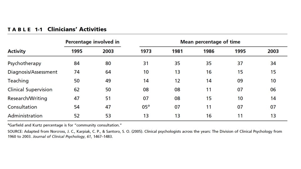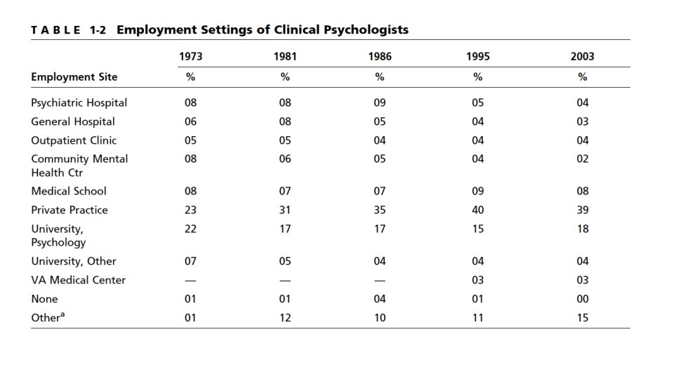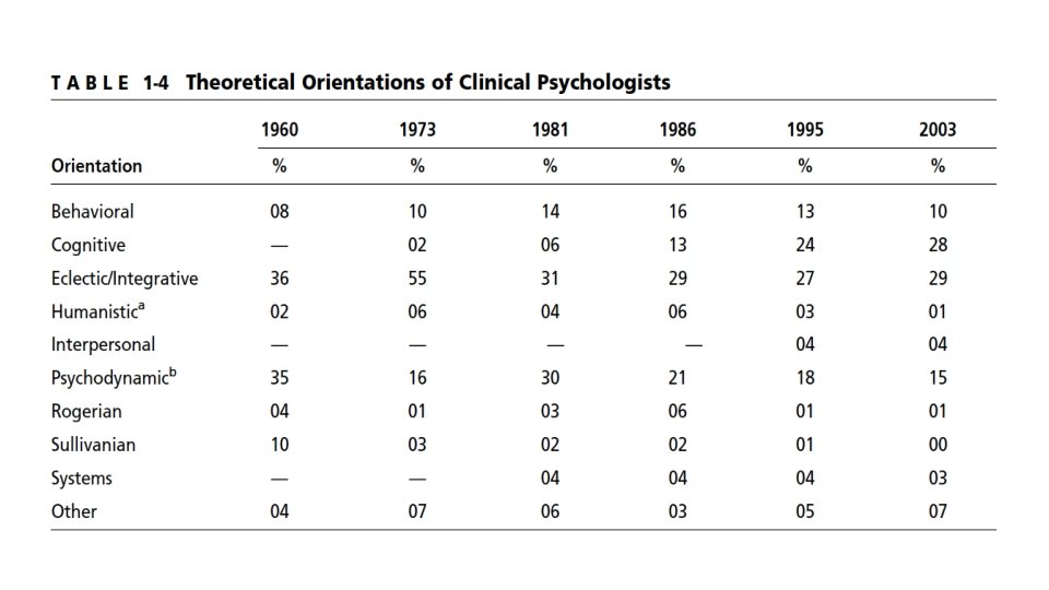 Clinical psychologists… • As compared to psychiatrists, clinical psychologists also receive more extensive training in psychotherapy • and are more likely to view psychopathology as a consequence of interactions between individuals’ biological/psychological/social predispositions and their experiences within the environment.
