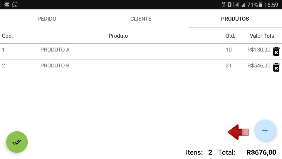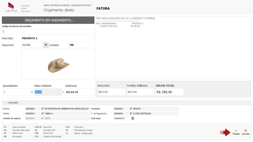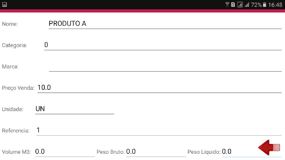 Clique no produto assinalado para ver a tela de cadastro de produtos.