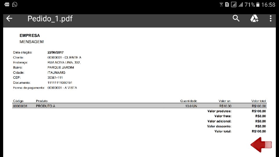 Esta tela exibe a relação de pedidos lançados, sendo os pedidos verdes já enviados a empresa e vermelhos ainda não enviados. Durante o processo de sincronia, ao enviar os pedidos para a empresa, existe a opção de excluir ou não os pedidos da aplicação móvel, a operação é critério do representante. Pedidos enviados (Verdes) não podem ser alterados na aplicação, apenas no ALBATROS. Porém pedidos não enviados (Vermelhos), podem ser alterados. Nesta tela também é possível imprimir e salvar pedidos, clique sobre o ícone da impressora ( ) do “ 1º pedido” para visualizar o layout de impressão de pedidos (Este layout pode ser alterado conforme a necessidade do cliente). Clique no para visualizar a inclusão de pedidos.