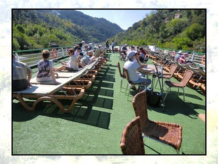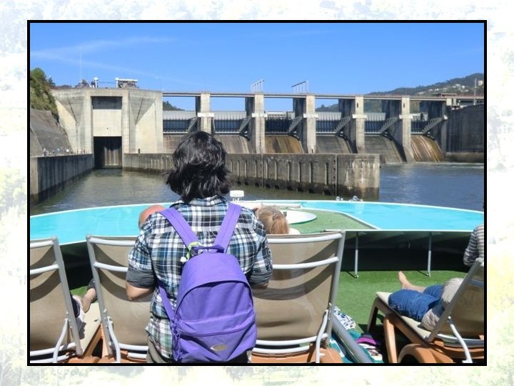Nous commençons la croisière proprement dite, puisque nous allons remonter le Douro jusqu’à Régua en passant les écluses de Crestuma et surtout celle de Carrapatello, la plus haute d’Europe avec 36 m. Et depuis le pont soleil nous allons voir défiler ces fabuleux paysages que sont les rives, tantôt rocheuses , mais surtout plantées de vignes en terrasses.