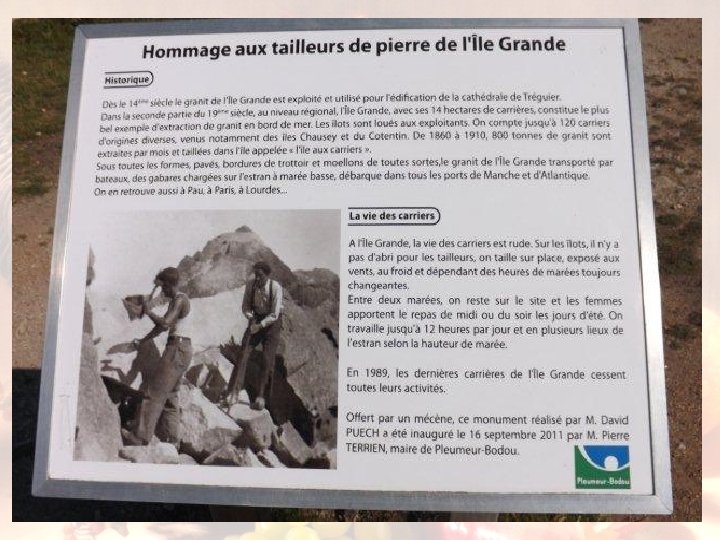 L'Île-Grande fait partie de la commune de Pleumeur-Bodo. Sur le littoral, elle est située entre Trébeurden à l'ouest, et Trégastel à l'est. En 1891, la construction d'un pont, à l'initiative d'Alexandre Godel permet de la relier à la terre. Ce pont est par la suite reconstruit en 1946 puis en 1974. En ce temps, l’île ne comptait qu’à peine une quarantaine de maisons et 150 à 200 habitants. Depuis le milieu du XIXe siècle, l'économie locale se développe grâce à l'exploitation intensive du granit gris en de nombreux points de l'île. C’est par la mer que se fait le transport du granit. La population est ouvrière, les pêcheurs et les agriculteurs sont rares