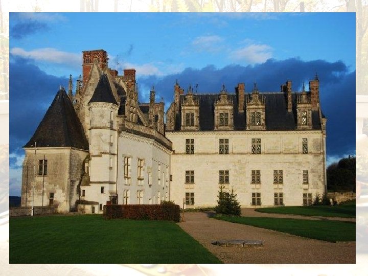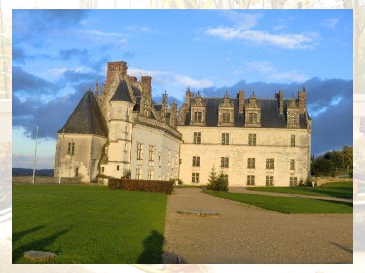 Le château d'Amboise surplombe la Loire à Amboise dans le département d'Indre-et-Loire. Il fait partie des châteaux de la Loire. Avant d'être rattaché à la couronne en 1434, le château appartenait, depuis plus de quatre siècles, à la puissante famille d'Amboise. Pendant la Renaissance, il sert de résidence à plusieurs rois de France. Il a été en grande partie détruit après la Révolution. Il ne reste environ qu'un cinquième du château de Charles VIII. Le château d'Amboise fait l’objet d’un classement au titre des monuments historiques par la liste de 1840. Le logis fait face à la Loire, et se trouve au sommet de la colline castrale. Premier exemple de l'inspiration italienne sur les bords de la Loire, il traduit le passage progressif entre l'architecture gothique et Renaissance À partir d'Henri III, les séjours royaux se firent plus rares, pour devenir quasi inexistants. Peu à peu, le château se transforme en prison de luxe pour les grands personnages de l'État. En 1626, César, duc de Vendôme et son frère Alexandre, grand-prieur de France, y sont internés pour avoir conspiré contre Richelieu. Le château passe ensuite entre les mains du frère du roi, Gaston d'Orléans Celui-ci y effectue quelques démolitions dans les années 1660. Confisqué de nouveau par le roi, Amboise redevient une prison. Louis XIV y enfermera Nicolas Fouquet et le duc de Lauzun.