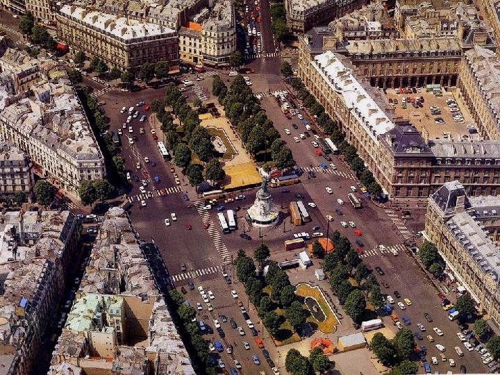 La Place de la République est une création d’Haussmann qui fait aménager, à partir de 1854, ce vaste espace afin de désamorcer les quartiers populaires de l’Est parisien, trop remuants à son gré. Le parcours entre la République et la Bastille est resté un lieu de prédilection pour les défilés politiques et les marches de protestation ouvrière. A droite, la caserne Vérines, également construite du temps d’Haussmann pour abriter 2 000 hommes. Le monument de la République, au centre, date de 1883.