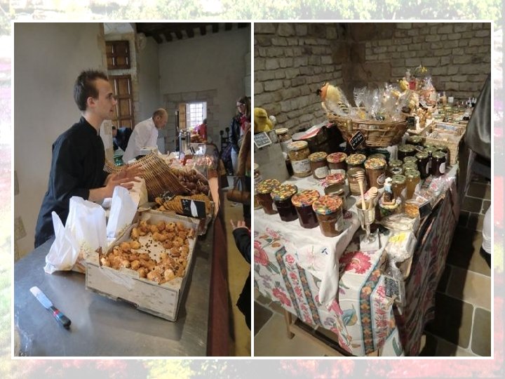 Nous avons fait la visite par un beau jour de printemps À l’occasion de l’exposition sur le thème du chocolat. Dans le château il y avait donc plusieurs stands où l’on pouvait acheter gâteaux et bonbons chocolat, mais aussi des articles Annexes qui accompagnent souvent ce genre de manifestation; miels, confitures et denrées régionales.