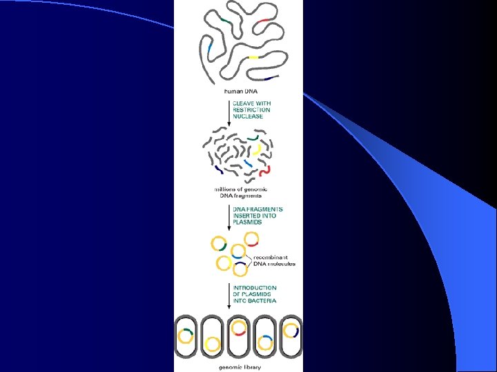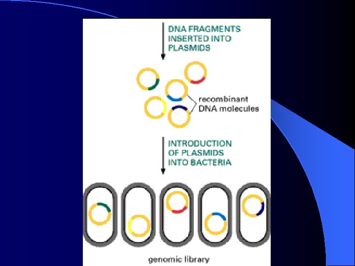 Genetic library l Collection of clones that contains all the genetic information of an individual = genomic library - gene bank l Chromosomes, set of genes of single cell type etc.