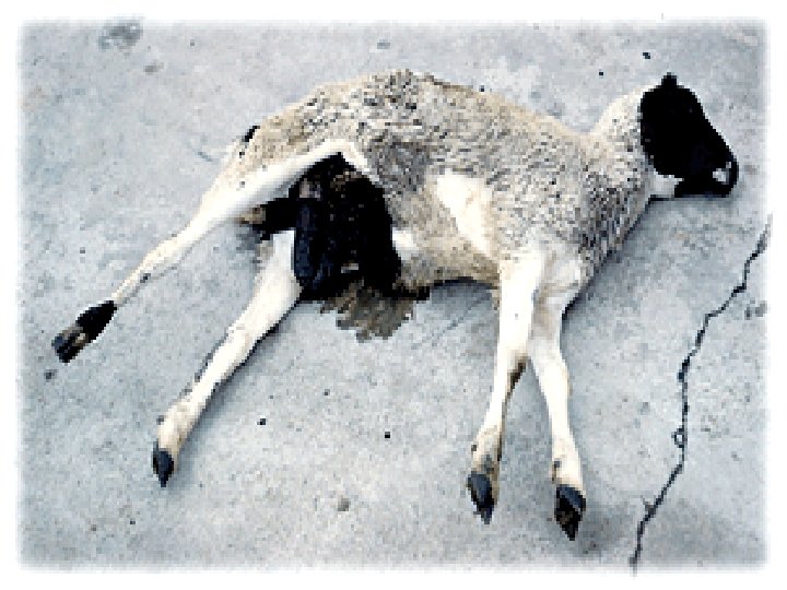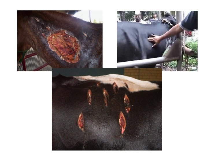 • In both cattle and sheep, exotoxins produced by bacteria that grow in the muscles cause gangrenous, cellulitis and myositis and death usually occurs in a short time • Muscles of the legs, back and neck are affected. Lumpiness, bloating and gas accumulation (creeping sound) occur • Myocardial and diaphramatic lesions may cause sudden deaths without an initial finding