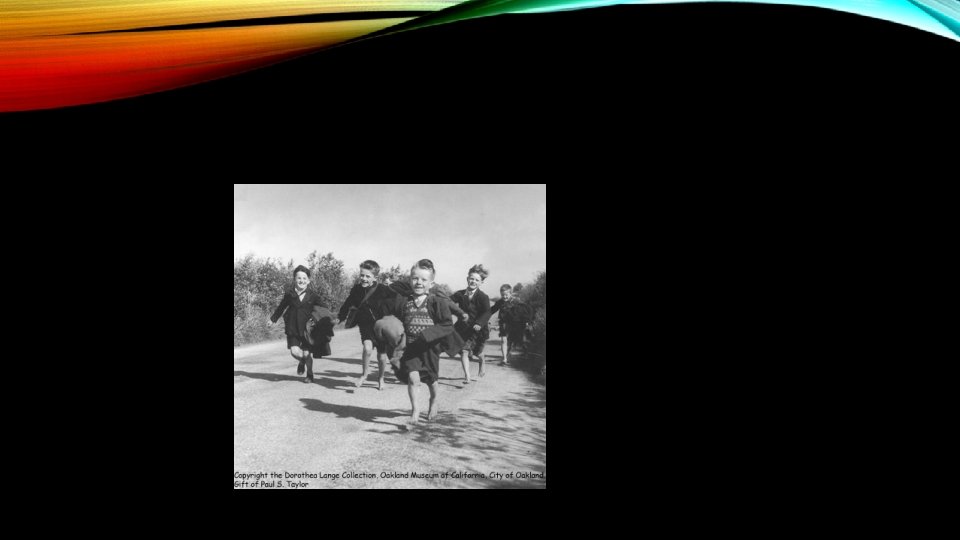 • This old photograph shows young boys running home from school in their bare feet. Long ago children often went to school in the summertime with no shoes on. In winter, children wore woolly knee socks with shoes or boots. Look at the photo. • What time of the year was it? Would you think their clothes was suitable for the time of year? What are some of the boys carrying? Are their schoolbags different to yours? How do you think these boys