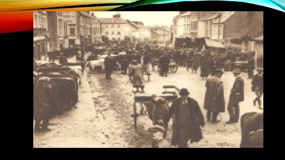 SHOPPING AT THE FAIR DAY • Long ago some people bought their clothes at a fair day. This was a day when animals or farm crops were sold in a town. • The fair day was a very important day for both the people of the countryside and the people of the town. Everyone enjoyed selling and buying all sorts of things at the fairs. Many people bought new or second-hand clothes at stalls at the markets.