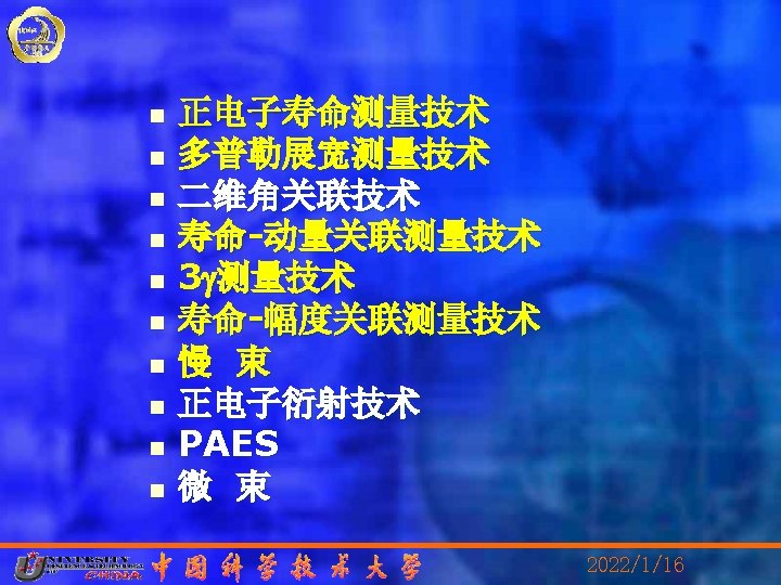 Positronium Classical picture n Quantum picture e- density e+ density joint density 2022/1/16