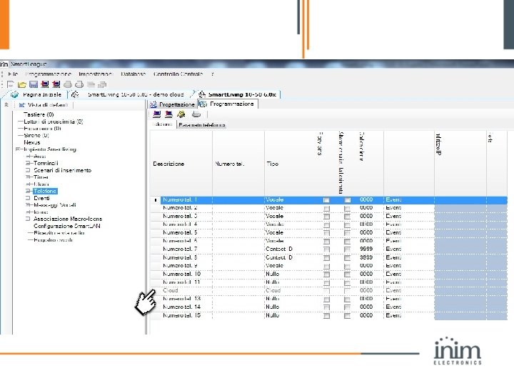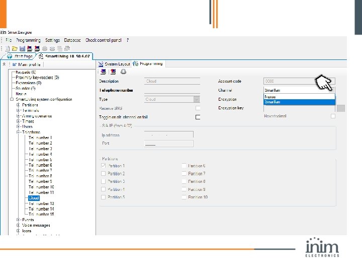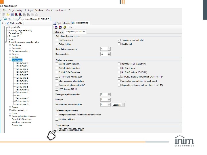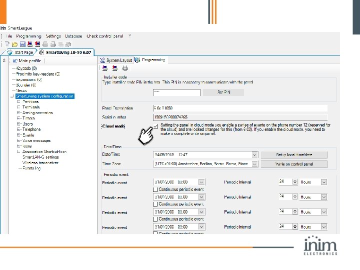 Inim. Cloud installer benefits • Direct connection with the panel: no port-forward, no DDNS • Easy supervision of the panel, worldwide available. • Maintenance contract: business opportunity! • Smart. Living plug&play: cloud is just connected!