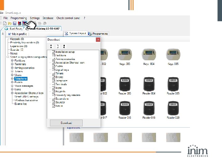 INIM devices and FW versions • Smart. Living Panels: v 6. 03 and following • Updated and native 5. 11 Smart. Living with production date from August 27, 2014 • • Smart. Lan/SI: v 5. 00 and the following Smart. Lan/G: v 6. 09 and the following NEXUS/G: v 4. 00 and the following ALIEN: V 2. 04 and the following