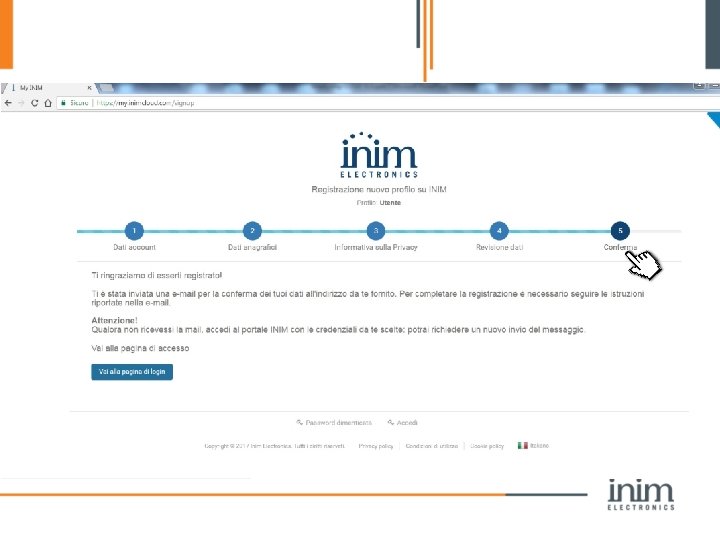End-User • STEP 1: create an account as user at www. inimcloud. com • STEP 2: Get an One-Time-Password (15 min) • STEP 3: OTP Enroll on keypad