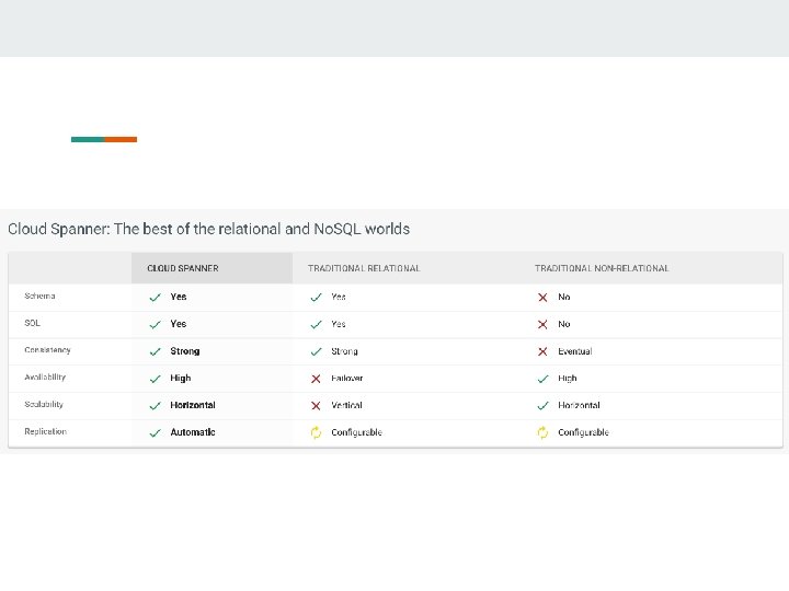 What does Spanner do? ● Key-value store with SQL Claim to fame ● Transactions “It is the first system to distribute data at global scale and support externallyconsistent distributed transactions. ” ● Globally distributed (why? ) ● Externally consistent (why? ) ● Fault-tolerant