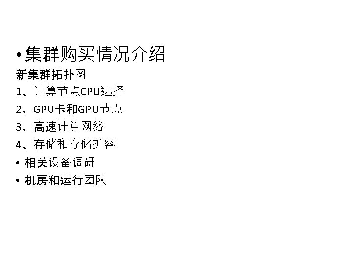 深度学习-NVIDIA DGX-2 THE WORLD’S MOST POWERFUL DEEP LEARNING SYSTEM FOR THE MOST COMPLEX DEEP LEARNING CHALLENGES • First 2 PFLOPS System • 16 V 100 32 GB GPUs Fully Interconnected • NVSwitch: 2. 4 TB/s bisection bandwidth • 24 X GPU-GPU Bandwidth • 0. 5 TB of Unified GPU Memory • 10 X Deep Learning Performance • 8 EDR Infiniband/100 Gig. E(OPA不支持) 3