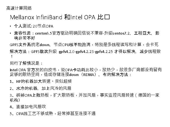 高速计算网络 Mellanox Infini. Band 和Intel OPA 比� • SPEC MPI 2007 Benchmark Suite