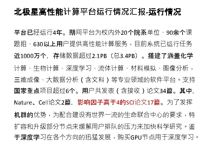 “北极星”升级和扩容的必要性-GPU(欧阳颀课题组文章) Deep. EM The convolutional neural network used in Deep. EM for particle picking in Cryo-EM Y, Zhu, et al. A deep convolutional neural network approach to single-particle recognition in cryo-electron Microscopy. BMC Bioinformatics (2017) 18: 348 Y, Zhu, et al. Structural mechanism for nucleotide-driven remodeling of the AAA-ATPase unfoldnase in the activated human 26 S proteasome. Nature Communications (2018), In Press.