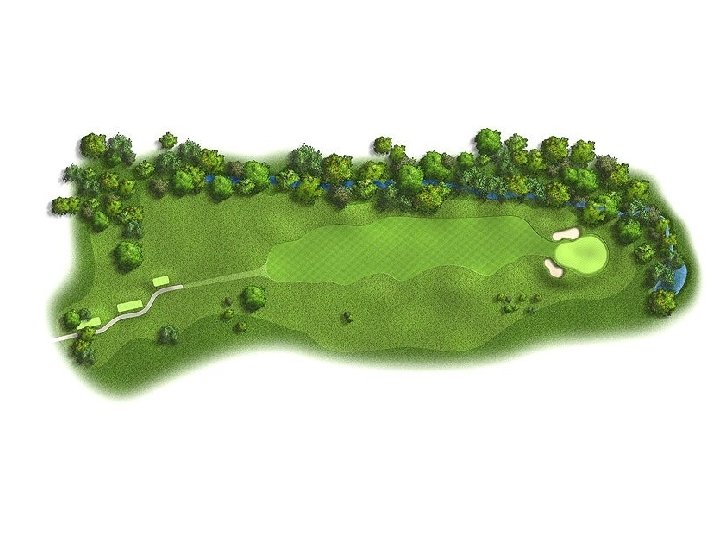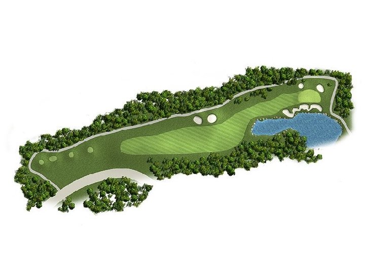 • green • tee Here is a dogleg over water. Would you risk a long shot over the water to try to reach the green?