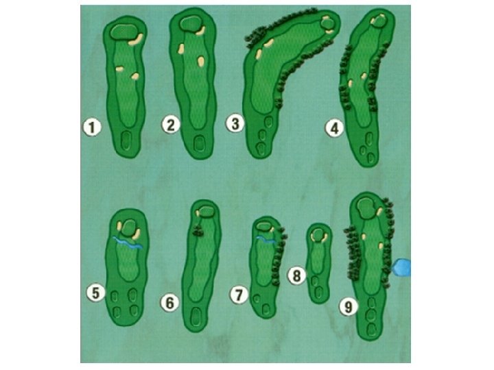 Golf Course Design • Each hole is designed differently depending on the shape of the land. • Most holes have some common features. What do you notice?