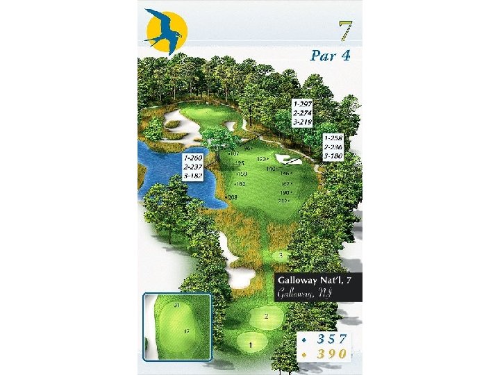 • Look for the features: • green • fairway • rough • hazards • tee(s)