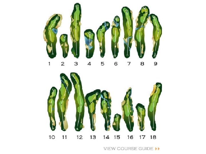 Golf Course Design • Most golf courses have 18 holes • Each hole has a unique shape and different features • Check out these 18 -hole courses: What are some things you notice?