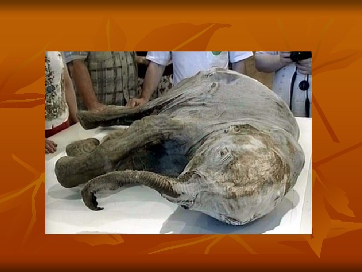 Original Remains n Preservation of remains with little or no change. n Preservation material n Tar n n Amber n n The sticky oil that seeps from Earth’s surface. Tar soaks into the organisms bones, preserving the bones from decay. Ice The hardened resin, or sap, of trees. The amber seals the organism from the air protecting it from decay.