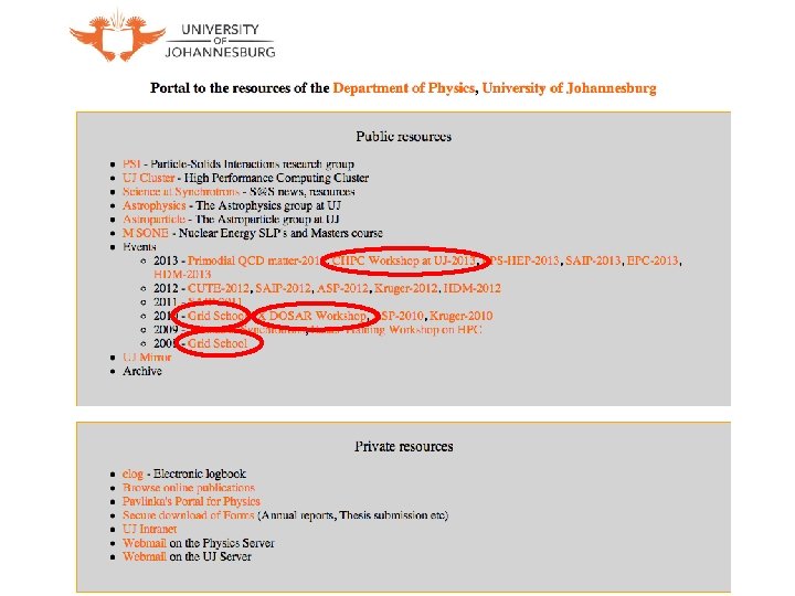 The stellar astrophysics group at UJ Astrophysics projects on the UJ fast computing cluster: A large group of researchers, co-led by Chris Engelbrecht at UJ, involving three SA institutions, an Indian institution and eight postgraduate students in total, are working on important corrections to current theories of stellar structure and evolution. To this end, we use the UJ cluster for two essential functions: 1. Performing Monte Carlo simulations of random processes in order to determine the statistical significance of purported eigenfrequency detections in telescope data. A typical run takes about 48 hours running on the majority of the cluster nodes. 2. Running stellar models containing new physics in the stellar structure codes (not in use yet, but implementation later in 2013 expected)
