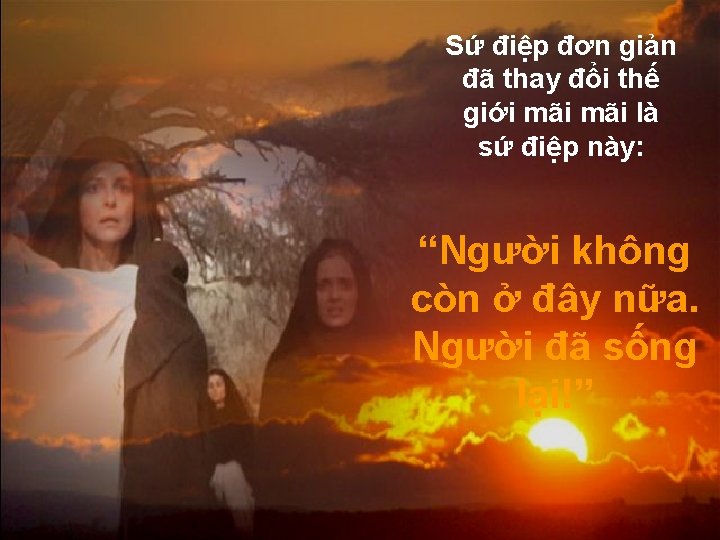 … thì các Kitô hữu đã tìm ra được chỗ đó rồi, và niềm vui do khám phá đó đang rạng sáng trên gương mặt họ. Từ chỗ đó, họ thấy rằng ý nghĩa trọn vẹn của cuộc đời họ là hiểu rõ bản chất mình, được nên trọn và được thông cảm không phải theo quãng thời gian là đời người, nhưng trong cái khung là vĩnh cửu. Đấy chính là yếu tính của Phục Sinh. Các lời đang vang rền xuyên qua công trình tạo dựng: “Người không còn ở đây nữa. Người đã sống lại!”