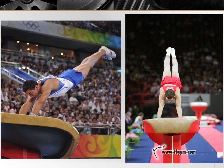 Comment créer une rotation ? Les rotations en gymnastique 2. Le blocage de mouvement de translation illustrations Sur un saut de lune, on observe 2 blocages de mouvement de translation : ü au moment de la pose des pieds sur le tremplin, ü au moment de la pose des mains sur le cheval. Sur un salto avant, le blocage des pieds sur le tremplin provoque l’annulation de la vitesse horizontale à ce niveau alors que le reste du corps à tendance à poursuivre son déplacement. Si tout le corps reste rigide, le corps à tendance à tourner en avant et à s’élever.