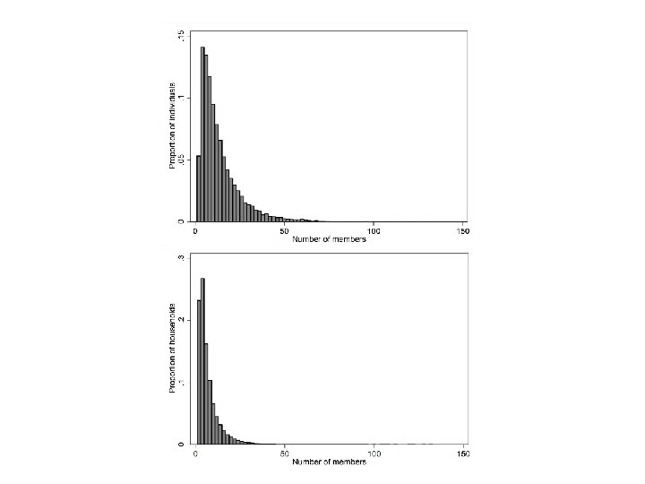Households as units of analysis • The previous figures all treated individuals as the units of an analysis • Every household was represented as many times as it had members – A household with 100 members would contribute 100 observations • In effect, the figures represent household size as experienced by individuals • Sometimes we would like to treat households as units of analysis – So that each household only contributes one observation per register