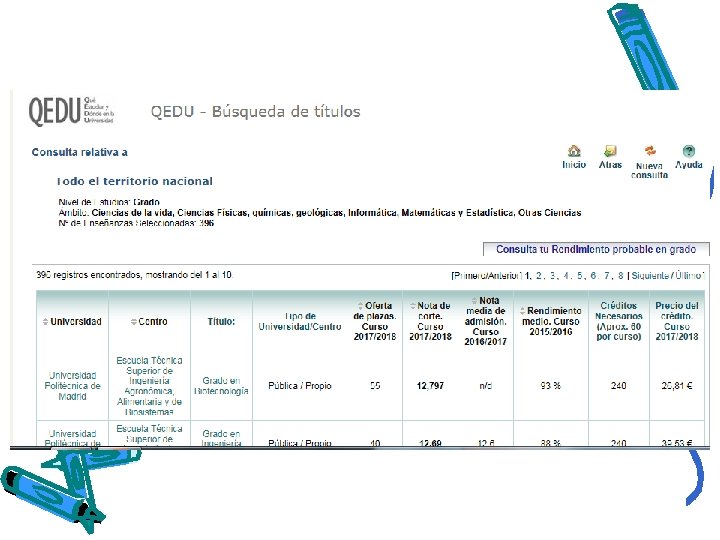 ADMISIÓN EN UNIVESIRDADES DE FORA DE GALICIA • Podemos estudiar en calquera universidade de España en igualdade de condicións, temos distrito aberto na súa totalidade • Debemos facer a solicitude independientemente do que solicitemos en Galicia. • Hai que solicitar información a universidade que interese.