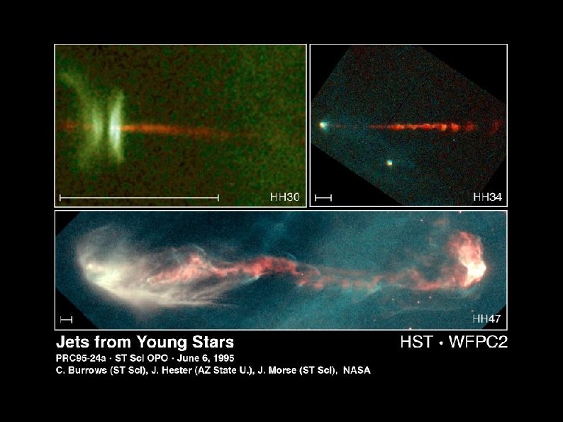 La protoestrella ya posee vientos que durante sus primeras etapas de formación son colimados por los campos magnéticos a través de sus polos. Estos chorros colimados arrastran la materia de su entorno y forman frentes de choque.