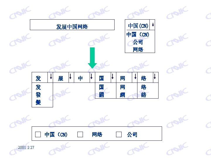 CNNIC Chinese Domain Name Registration Policy Zhang Wenhui CNNIC 2001. 2. 27 China Internet Network Information Center