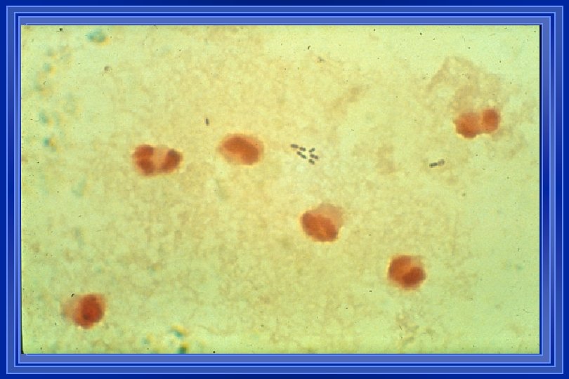 CSF SMEARS & STAINS Gm. S + in 60 -90% of pts with untreated bacterial meningitis l With prior ATB Rx, positivity of Gm. S decreases to 40 -60% l REMEMBER: + Gm. S = Heavy organism burden & worse prognosis l