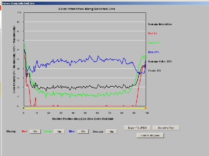 The Value of The Control The color graph for the control offers a baseline of R, G, B values to the student. The next set of slides shows a sample of gelatin exposed to CO 2 and its corresponding graph after 30 minutes. ADI lets you keep the settings if you are photographing the same thing over time.