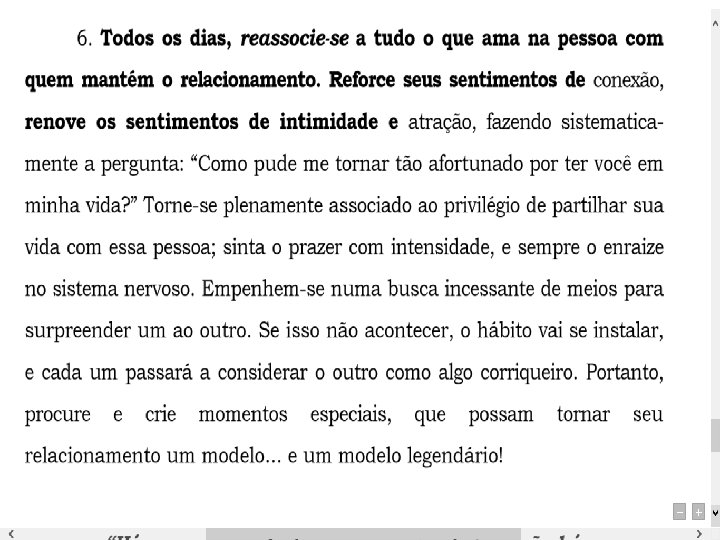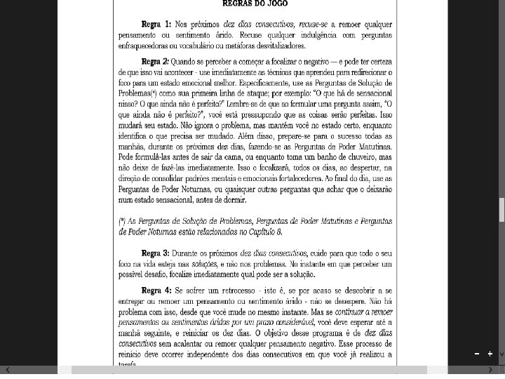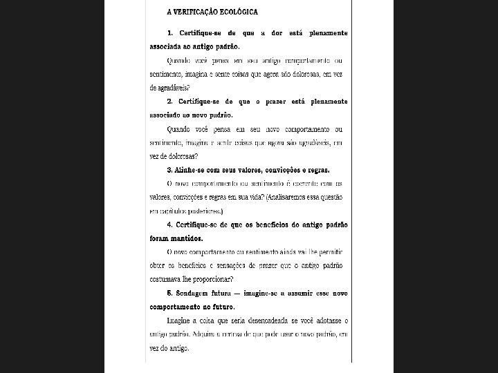 PERGUNTAS • 1 Quais os sinais ao longo do caminho que mostrariam que o processo de coaching está progredindo? 2 O que você quer criar neste capitulo de sua vida? 3 Você está vivendo uma vida baseada em seus próprios valores e sonhos, ou está confuso em alcançar o quer na vida? 4 Se hoje você se desse a permissão de ser egoísta o que mudaria em sua vida? Deus te deu a permissão de ser egoísta. Apenas observe. 5 O que está impedindo você de entrar em ação? 6 Quais são suas expectativa aqui? 7 Quais são seus maiores recursos nessa situação? 8 Quem é você? O que você é capaz de fazer? 9 O que é possível para você. Quais são suas limitações? 10 Se esta sessão for útil para você, o que é que você notaria disso? Sentiria sobre isso? emprego, dando maios atenção às atitudes da empresa do que a programas específicos.