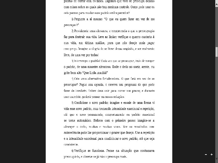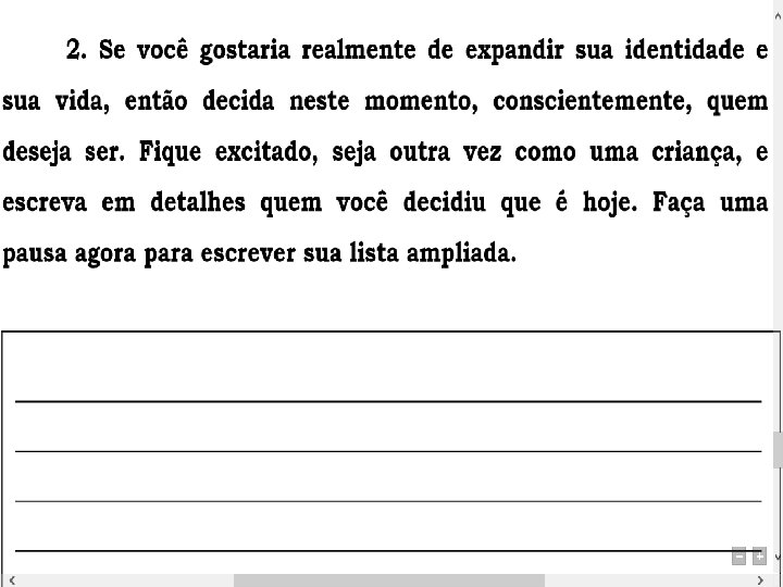 PERGUNTAS • ESCLARESCER QUALIDADES 1 Descreva alguns períodos de aprendizado rápido. 2 Qualidade de excelência que você possui. 3 Períodos extensos de alta performance. 4 O que traz muita satisfação para você? 5 Como você se parece para as outras pessoas? • 6 Onde você está incongruente? 7 O que te diverte mais? 8 Com o que e com quem você se compara? 9 Você está seguindo o seu caminho ou o caminho de alguém? 10 O que você fez para superar sua ansiedade na ultima vez que se viu nessa situação? 11 O que funcionou para você? 12 Você se forçou a estudar a respeito de ansiedade? 13 Que método utilizou para reduzir a ansiedade