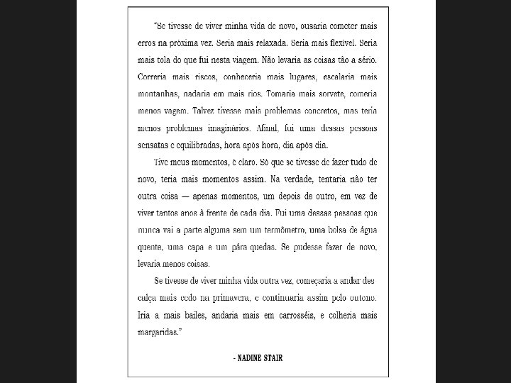 PERGUNTAS • PARA PLANEJAMENTO DE VIDA (Hudson 1996) 1. Se um gênio aparecesse e lhe concedesse um desejo para o próximo capítulo de sua vida, o que seria? 2. Se você pudesse viver o próximo estágio de sua vida em qualquer outro lugar do mundo, onde seria? (Quais os motivos? ) 3. Se você pudesse ter 3 conselheiros, sejam pessoas do presente ou figuras históricas, para guiá-lo no próximo capitulo da sua vida, quem seriam? 4. Se você recebesse um presente em dinheiro para patrocinar a próxima fase de sua vida, quanto seria? 5. Para quem em filhos. Como gostaria eu eles fossem daqui a cinco anos? 6. Se você fosse reconhecido por uma qualidade pessoal que você desenvolveu nesse capitulo novo de sua vida, qualidade seria? 7. Qual seria o titulo apropriado para este capítulo que inicia? 8. Até onde você quer chegar? 9. Você está satisfeito com o que você projetou no futuro? 10. O que você faria se soubesse, que não poderia fracassar? Se estivesse absolutamente certo do sucesso. Que atividades seguiria, que ações faria? 11. O que você quer ter atingido quando chegar ao final de sua vida?