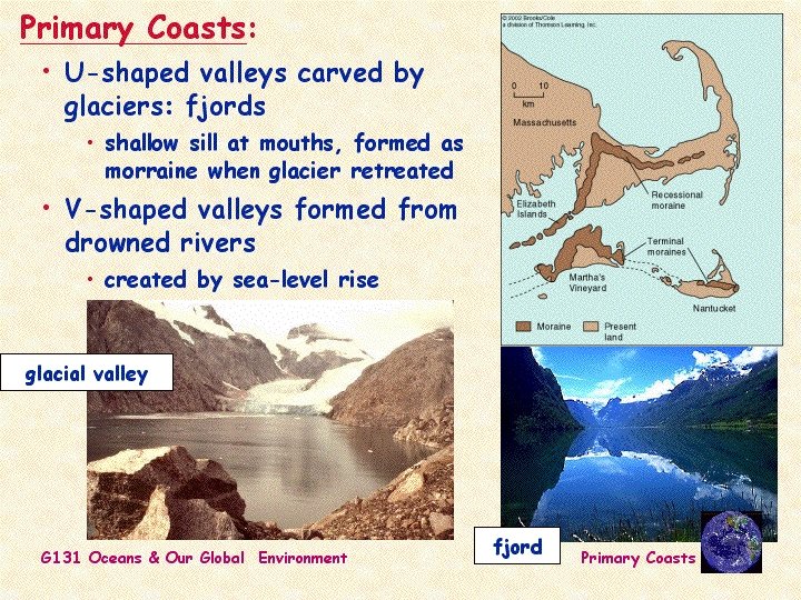 Emergent and submergent coastlines • Tectonic processes, such as mountain building or basin formation, and isostatic adjustment depress or elevate a portion of a coastline. These processes cause local or regional sea level changes but do not affect global sea level. • Sea level can also change globally. A global sea level change, called eustatic change, occurs by three mechanisms; • 1 changes in water temperature, • 2 changes in the volume of the mid-oceanic ridge, • 3 growth and melting of glaciers.