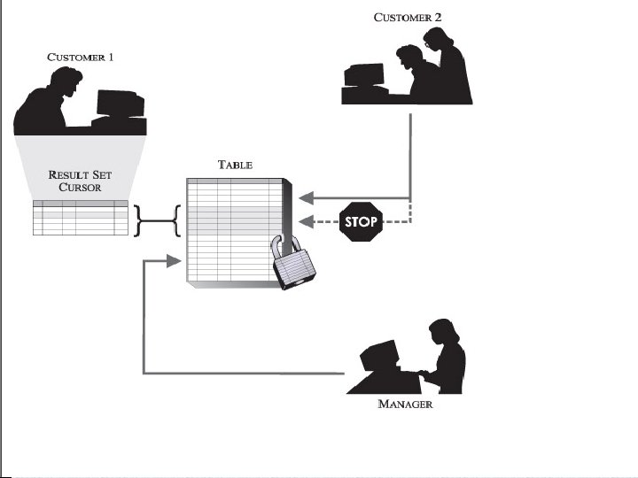 The Read Stability Isolation Level § when the Read Stability isolation level is used, only rows that are actually retrieved by a single transaction are locked for the duration of that transaction. § phantoms, however, can and may be seen but because of fewer locks are acquired, more transactions can run concurrently. § if a transaction scans 1, 000 rows in order to retrieve 10, locks are only acquired and held on the 10 rows retrieved—not on all 1, 000 rows scanned.
