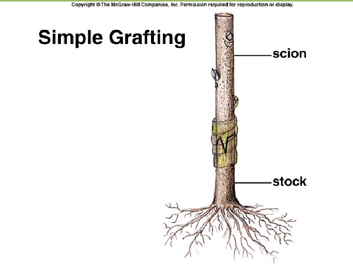 Grafting • The scion is that part of the graft combination that is to become the upper or top portion of the plant. – Usually the scion is a piece of stem tissue several inches long with two to four buds). – If this piece is reduced in size so there is just one bud, with a thin layer of bark and wood under it, then the operation is termed budding. • The rootstock is the lower part of the graft combination, the part that is to become the root system.