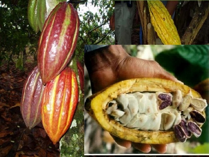The Trinitario Group ü Believed to evolve from a cross between Forastero and Criollo groups. ü Highly heterogeneous group. ü Selected from Trinidad, hence the name Trinitario. ü Cultivated in Mexico, Central America, Trinidad, Colombia, Venezuela and some African and South East Asian countries. ü Botanical traits are intermediate between Forastero and criollo groups ü Bean flavour is also intermediate between Forastero and Criollo groups.