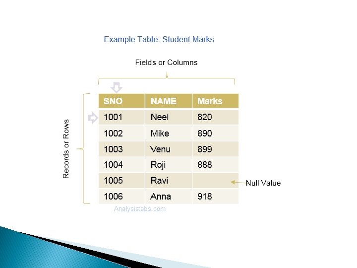 BELOW IS A TABLE NAMED ‘STUDENT‘. RDBMS GIVES US THE FACILITY TO VIEW ONLY SOME PARTICULAR FIELDS ACCORDING TO OUR NEED WHICH ARE DIRECTLY ACCESSED FROM BASE TABLES WHEN REQUIRED. name class Marks PUPIN NUMBER SONALI BCA-2 95 17231 TAMANNA BCA-2 90 17236 RAJWINDER BCA-2 90 17267 SAKSHI BCA-2 86 17893 SADHANA BCA-2 82 17453
