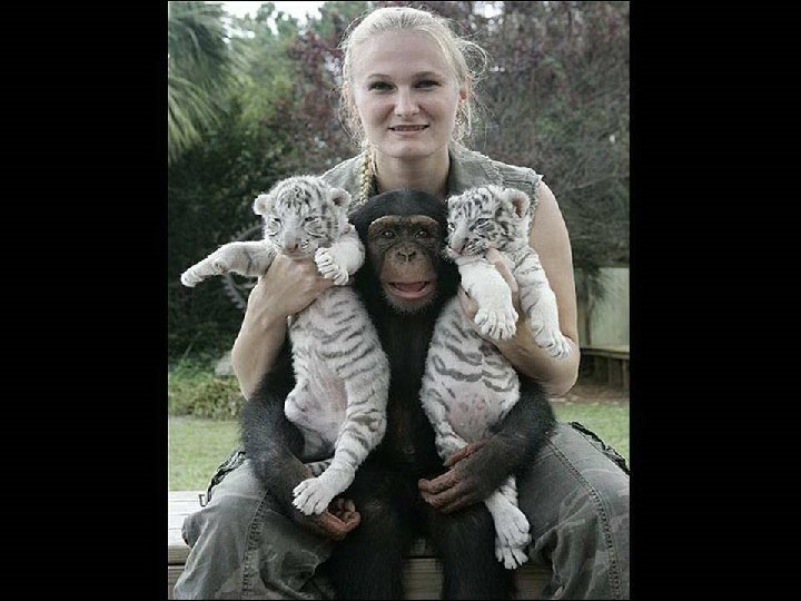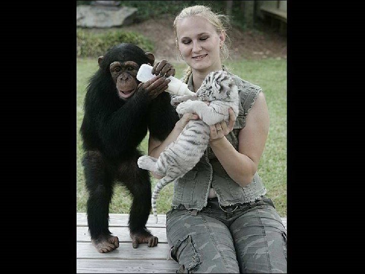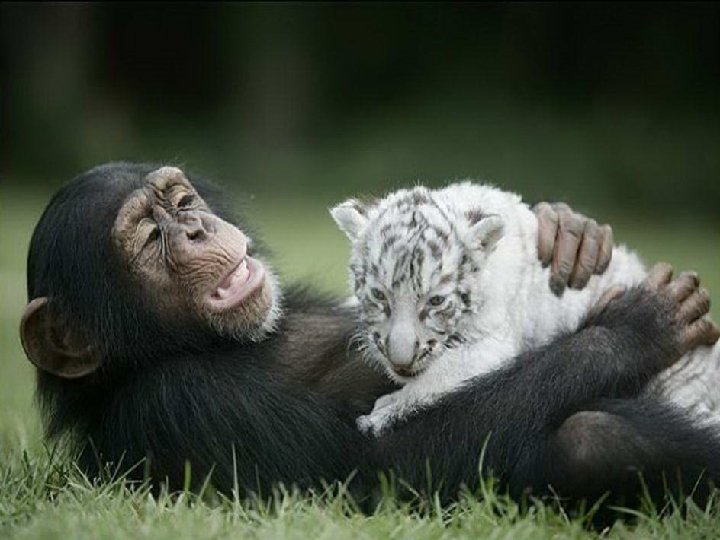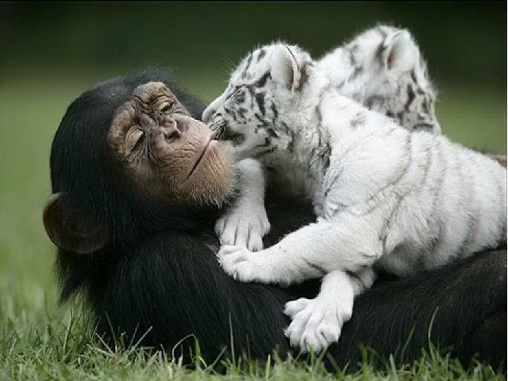 Huragan Hanna w Południowej Karolinie spowodował, że dwa małe białe tygrysy zostały oddzielone od matki. Uratowała je szympansica Anjana. Nie tylko bawi się z nimi, ale pomaga im podawać butelkę, mimo to, że np. lampart i lew są naturalnymi wrogami szympansów. To się nazywa instynkt macierzyński! A zresztą popatrzmy - mowią, że obraz wart jest tyle, co tysiąc słów. . .