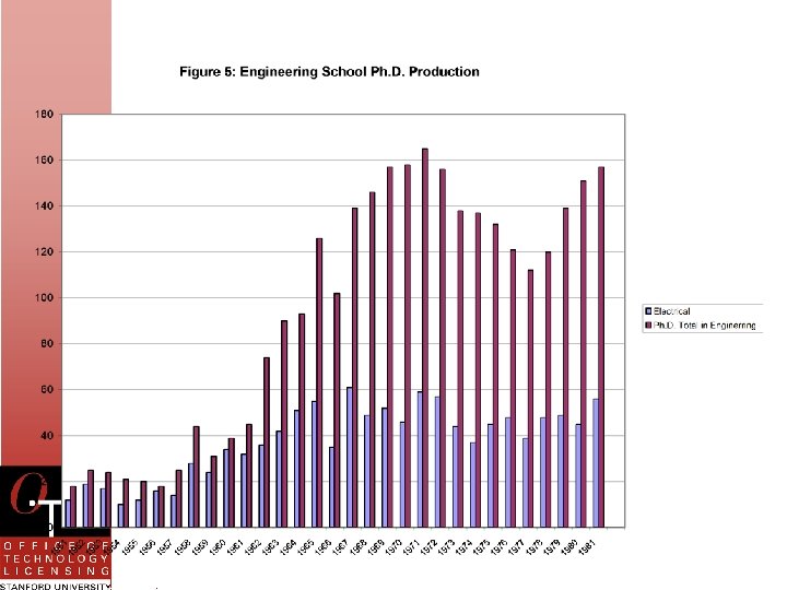 Some Stanford Case Studies F F 1970 WYLBUR $1 Million 1971 FM Sound Synthesis $23 M – Inventor: Professor John Chowning, Department Of Music 1974 Genetic Engineering $255 Million – Inventors: Professor Stanley Cohen (Stanford Genetics Dept) & Professor Herbert Boyer (UCSF) 1996 Google $336 Million – Inventors: Graduate Students Larry Page and Sergey Brin, Computer Science Department