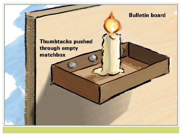 Cognition: Problem Solving �Functional Fixedness A block to problem solving that comes from thinking about objects only in terms of their typical functions Candle-Mounting Problem � Using these materials, how would you mount the candle on a bulletin board?