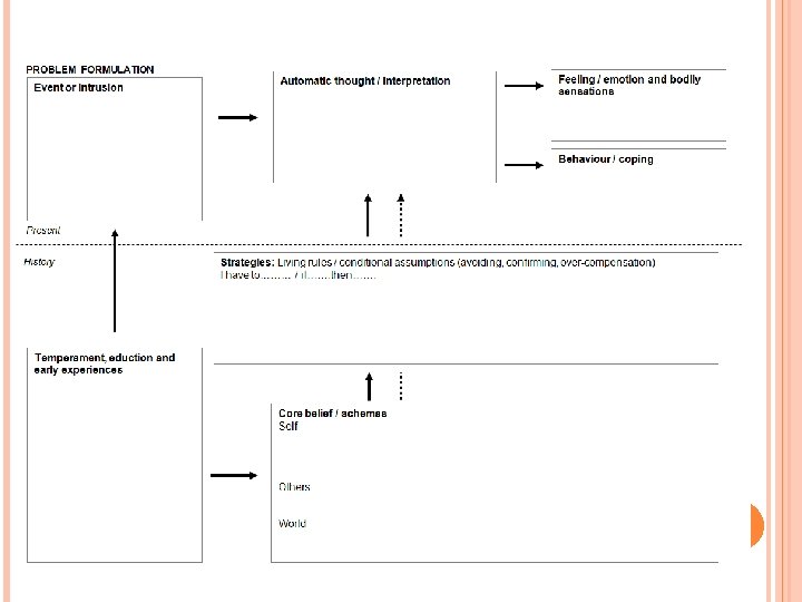 CRITICAL EXPERIENCE Activation of core believe which will be seen in the automatic thought Negative feelings Body sensations Behaviour New (disfunctional) Thoughts