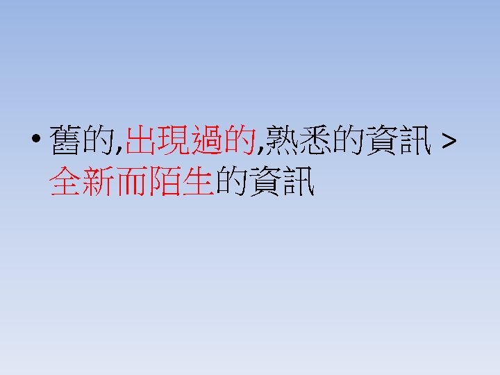 Style還有 說 Old before new Begin sentences with information familiar to your readers End sentences with information that readers cannot anticipate