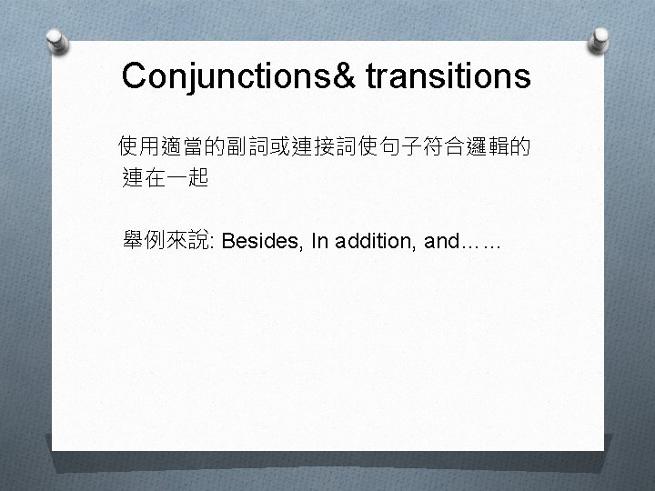 如何讓語句連貫~~? 重複(repetition) 同義字(synonym) 連接詞(conjunctions and transitions)