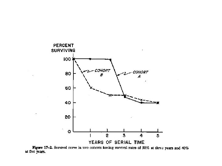 Table 17 -1. DIRECT ARRANGEMENT OF SURVIVAL DATA FOR 50 PATIENTS Interval Censored During Interval Cumulatively Followed from Onset Throughout This Interval Died During Interval 0 -1 yr. 1 -2 yr. 2 -3 yr. 0 1 1 50 49 48 1 2 3 Cumulative Deaths Cumulative Mortality Rate Cumulative Survival Rate 1 3 6 0. 020 0. 061 0. 125 0. 980 0. 939 0. 875